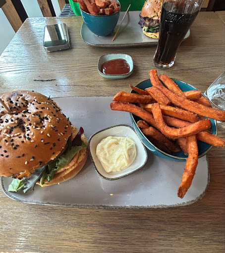 Allgemein ist es ein sehr schöner Laden. Die Burger sind lecker, das Lokal selbst ist schön und die Toiletten sind auch sauber. Kartenzahlung ist möglich. Die Bahn hält fast direkt vor der tür, also ist...