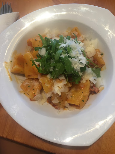 I found this restaurant by asking my bike tour guide for somewhere to eat. She highly recommended Da Me, boasting the fact that they make their pasta fresh daily and how it's owned and operated by a local family. She pretty much had me at "do you like Italian?" The rest just made it better. It's easy to find if you're a tourist. I found it without any problems following my google map. The place is a good size with some outdoor seating if the weather is nice. They had plenty of appetizers and pasta dishes but I settled on the Paccheri with salsiccia and tomato and Ruccola. My waiter, Davide, highly recommended it and said it's his favorite dish so it must be good right? Now when I say the food was on point, I mean that pasta was out of this world good. It was so good, I even used the bread they gave for the table to clean up whatever bit of sauce and pork that was left. Looking forward to trying more food next time...