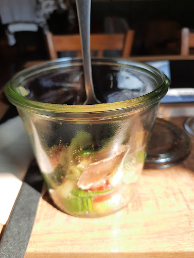 In general, the atmosphere is really nice, especially with the seating arrangements outside. The food quality is decent, though the portion sizes are a bit small for my taste. The service is always friendly, but I felt the waiting times were longer than expected (though this might just be my subjective perception). Generally, a bit more client focus would be appreciated, such as proactively asking if we want more and being more attentive.