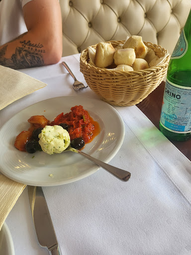 Read moreErstmal das Positive. bis 21.00 Uhr konnten wir draußen in der Abendsonne sitzen ruhige Straße, gut zu parken, die Kellner stilvoll und italienisch freundlich. ich habe Riesenhunger, bestelle eine vom Kellner empfohlene hausgemachte Lasagne. Nach cirka dreissig Minuten wird die zunächst stattlich lecker aussehende Lasagne. In der Wartezeit brachte der Kellner ein Körbchen mit Pizzabrötchen und einen Teller mit roter Soße, einigen Oliven und Butter. Ich habe mal ein! Brötchen und die Oliven verspeist. Aber dann wurde es wirklich unangenehm: die ersten fünf Gabelbisse der Lasagne hatte ich jedes Mal kleine in den Zähnen knirschende Knochensplitter oder Eierschalenstücke auszusortieren. Damit war mit der Appetit vergangen!