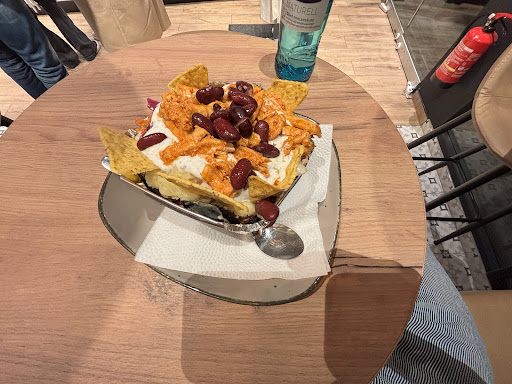 Ordered the Mexican Kumpir. The potato was baked to perfection. The mashed bits were absolutely fused in the cheese perfection but it still wasn't overpowering. The zaziki was perfect in combination with the American salad, couscous, which i usually don't enjoy, red cabbage, the amazingly well-marinated chicken breasts with the soft texture, the nacho-chips, the black...