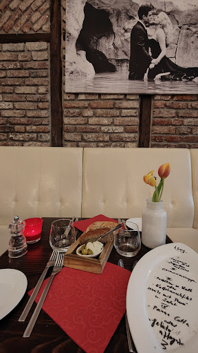 Wir haben über Groupon das Menü gekauft. Erster Eindruck, Service sehr zuvorkommend. Location klein aber fein. Die Chefin hat ihren Job perfekt gemacht und einem italienisches Flair an den Tisch gebracht. Aber auch die andere servicekraft war sehr freundlich und hat einen guten Job gemacht. Wollten gerne ein Kölsch trinken und uns wurde zappes angeboten. Die war leider kein Kölsch sonder Pilz. War für mich jetzt nicht schlimm. Sollte nur besser kommuniziert werden. Bei Groupon Menü gab es als zwischengang Nudeln mit Bolognese. Leider hatte sich das Menü geändert anstand der Bolognese gab es Erbsensuppe . Aber fange ich bei den Vorspeisen an. Der Ziegenkäse mit Salat war richtig lecker. Das carpaccio war sehr mild Gewürz hatte kaum Geschmack . Klar bei so wenig Fleisch muss man vorsichtig sein, das es nicht nur nach Salz Essig und Beilagen schmeckt. Trotzdem würde ich es besser Abschmecken. Zwischengang die nicht gewünschte Erbsensuppe, stellte sich als wesentlich leckerer heraus als erwartet. Sie schmeckte nach frischen Erbsen, war Cremig und es passte alles. Dennoch war ich traurig, das es keine Kalbsbolognese gab. Der Hauptgang das Kartoffelpüree mit den Minikalbsrouladen in einer mit Wein verfeinerten Demi Glas, war leider auch sehr mild Gewürz. Habe mir dann erstmal, vom Nachbartisch Salz, geklaut. An das Kartoffelpüree würde ich noch etwas Muskatnuss tun. Die Rolladen hätte ich schärfer angebraten damit sie ein bisschen Aroma bekommen. Die Soße war lecker . Zum Nachtisch gab es Eis mit Espresso. Lecker aber nichts besonders. Und Panna Cotta mit Eierlikör Soße . Die Panna Cotta war so wie ich sie mir wünsche . Die Soße schloss durch den dezenten Alkoholgeschmack perfekt an den Hauptgang an. Durch die eierlikörsauce fühlte es sich unglaublich fettig im positiven Sinne im Mund an.Einfach Lecker.