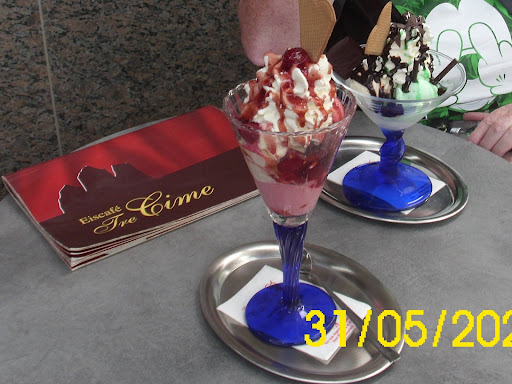 Read moreDAS ist das Eis, das ich seit den 80er Jahren vermisst habe!!! In den letzten 30 Jahren wurde Speiseeis oft wässriger und auf eine merkwürdige Art "künstlicher" (und teurer). Hier im Tre Cime wurde ich mit einer Art Zeitmaschine wieder in die Helmut-Schmidt-Ära zurückkatapultiert. Das Eis hier ist herrlich fruchtig und...
