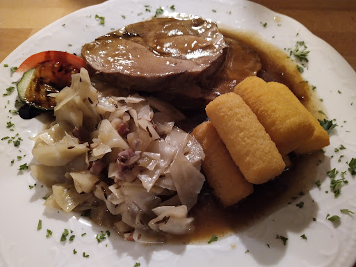 Nach dem Lesen der meisten Bewertungen muss ich sagen, ich bin schockiert, wie weit unsere Wahrnehmung und die hier verfassten Darstellungen auseinander driften. Wir haben uns auf ein schönes, uriges und hausgemachtes Essen gefreut. Leider wurden unsere Erwartungen enttäuscht. Nach Zuweisung eines Platzes warteten wir 15 Minuten dort und wurden schließlich hier erst hingewiesen, dass es keine klassische Karte gibt, sondern diese im Außenbereich durch Tafeln ausgeschrieben wird. Corona-bedingt nicht weiter schlimm, ein Hinweis bei der Einweisung und eine weniger schnippische Bemerkung wären allerdings angemessen gewesen. Die Getränke wurden bestellt, die Karte fotografiert und nach dem Erhalt der Getränke passierte lange nichts. Nach 30 weiteren Minuten und einem Hinweis meinerseits durften wir dann bestellen. Neue Getränke wurden nicht erfragt. Nun begann die lange Wartezeit. Weitere 45 Minuten später bekamen wir dann den "Gruß aus der Küche" - ein Klecks Frischkäse, eine Scheibe Brot in drei Stücke geschnitten und scheinbar die Reste der Knabberbox vom Vortag. Kein Zynismus hier - die drei Salzstangen waren so pappig, dass ich das ruhigen Gewissens so nennen kann. Nun kam das Essen, nicht ohne den netten Hinweis "Ihr habt Pech gehabt, dass die zwei großen Tische vor euch bestellt haben" Zitat Ende. Spannend war an der Stelle, dass unser Nachbartisch, welcher 30 Minuten nach unserer Bestellung kam, schon gegessen hat. Das Schnitzel Wiener Art war wenig spektakulär, nur das Schnitzel offensichtlich von günstiger Qualität. Bei dem Preis nicht anders zu erwarten. Das Jägerschnitzel war das gleiche in grün, jedoch war die Soße unter Hausfrauenniveau. Pilze aus der Dose, eine schleimige, fast ungenießbare Bindung, die nicht mal von der Gabel tropfte und alles andere als appetitlich aussah. Nun zum wahren Sorgenkind der Bestellung: die Spare Rips. Als Ersatz für ein anderes Gericht war uns auch hier der Preis nicht bewusst, sonst wären wir stutzig geworden. Wir sahen es als Ersatz für eben dieses Gericht, was wohl unser Fehler war. Es wurde mit einer vermeintlichen Sweet Chilli Soße gereicht. Da am Gebäude groß mit einem Smoker-Grill geworben wurde, hoffen wir hier auf ein gutes Produkt. Leider war das Fleisch extrem trocken, fettig und schwer vom Knochen lösbar. Mein Empfinden war hier, dass die Rippchen aus der Friseuse kamen, das kann ich allerdings nur vermuten. Die Soße war an der Stelle ebenfalls nicht wie erwartet und auf den Hinweis, sie sei sehr senfig wurden wir informiert, dass diese eigentlich selbst gefertigt wird und man holt uns neue. Nach 10 Minuten dann der nette, aber unnötige Hinweis, dass es kein Senf sondern Meerrettich sei. Da die Soße trotzdem nicht durch neue Informationen genießbarer wurde, bekamen wir klassische Mayo, wie gewünscht. Diese mussten wir auch nicht extra zahlen. Getränke wurden nicht einmal nachgefragt.