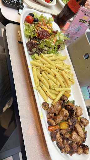 The restaurant is situated inside the Kalk Arcaden shopping mall on the underground floor. The restaurant serves halal meat. We tried spicy tavuk (chicken) pasta, which was very delicious, juicy, and flavourful. They gave a lot of foods. The only drawback is that the salad comes without any salad dressing. You may need to add extra salt. The place was always busy. They take cash and EC cards both. The price is moderate, and the atmosphere is family-friendly. I recommend this restaurant for Turkish style pasta meal. They also serve beef and...