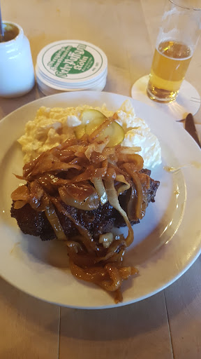 This is a local gem!! This place is very popular with locals and was packed during lunch hour. The menu is limited (there are only 3-4 things on the menu), but the food is packed with flavors and is absolutely delicious. The best pork chops I’ve ever had! Portions are large, so be mindful when you order. Again, this is a traditional local pub/restaurant, so they do not cater towards tourists, but this is part of the charm that makes this place so authentic. The service is great in a sense that they will make sure you always have a beer ready for consumption right next to you. They will continue bringing more unless you tell them you are done. When you come in, just act like a local and do not expect to be escorted to your seat. Rather, look around, find an empty seat or table and go claim it. The waiter will come by with a beer and will promptly take your order. It is likely that the menu will be in German, and English version will not be available. So either download Google translate app to help with ‘on the spot’ translation or research the menu online the night before. The atmosphere is awesome! When we were in for lunch, we were the only tourists, and the place was packed with local professionals having lunch and local retirees catching up over a few beers. If you are looking for an authentic local pub, this...
