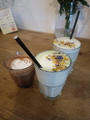 Read moreIt's a cute little café which allows you to pick between different "milks" for your drink (like soy\coconut\cow....) That's why we went there But sadly they handed out the drinks wrong - if ma friend wouldnt have tasted that hers it not cow milk I would not have realised that mine probably isn't soy - cause for me it tasted like soy milk 😐 dunno My lactose intolerance isn't that crazy but for some people it would have been bad ;( But the drinks were very pretty The prices were okay for them For the cakes and desserts the prices were a little high in my opinion - if you look at the size of them compared to the price - if they would have been a lil bigger I would have understood