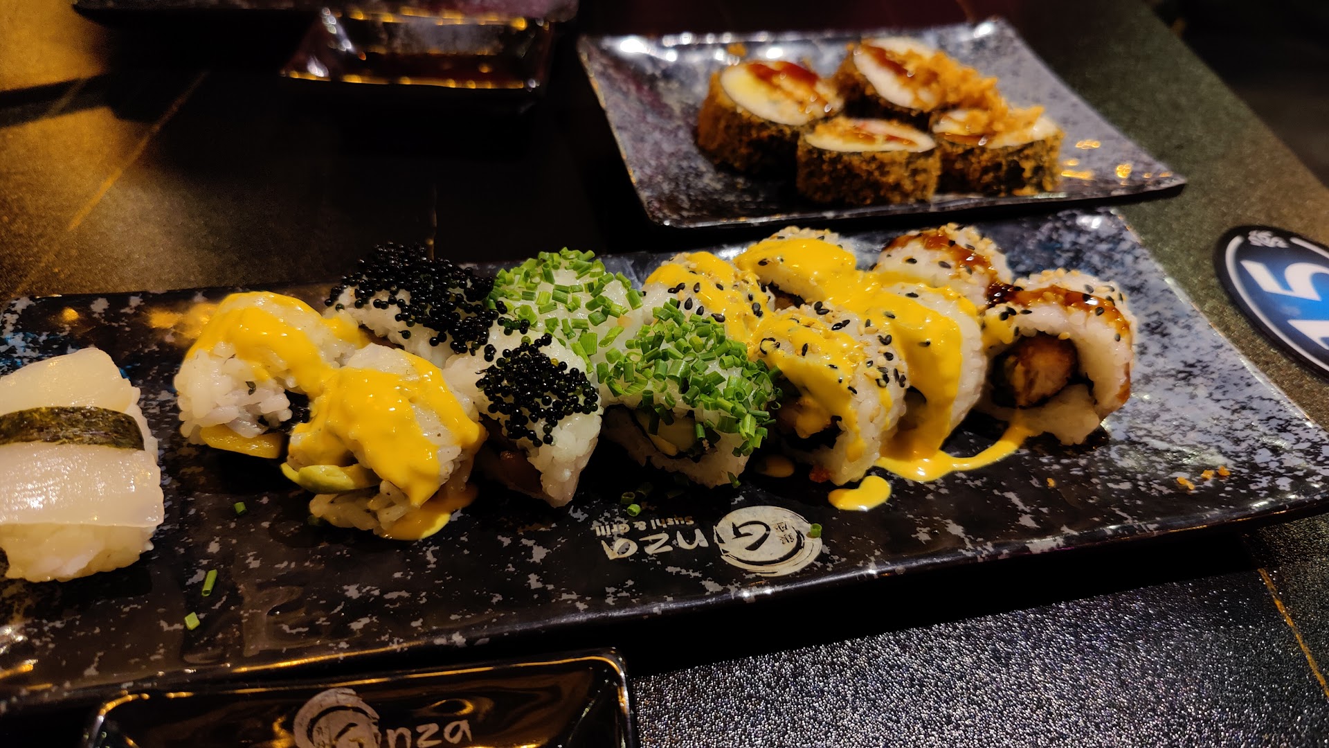 Read moreMeine Erfahrungen mit Ginza: Ich war schon mehrfach dort und wurde kein einziges Mal enttäuscht. Die Bestellungen erfolgen im mittlerweile schon eher "klassischen" Tablet-Verfahren und man kann zwischen dem normalen Dinner und dem Big Dinner entscheiden. Aus eigener Erfahrung würde ich immer das Big Dinner empfehlen, da doch einige viele und vor allem, auch sehr sehr leckere Gerichte im Big Dinner inkludiert sind. Reservierung werden selten wahrgenommen, allerdings mussten wir nie warten und wurden immer direkt zu einem Tisch gebracht. Die Auswahl ist sehr groß und qualitativ trotzdem auf einem sehr guten Niveau! Sashimi schmeckt auch sehr köstlich und die Qualität des Sashimi war sehr überzeugend und ist den Aufpreis definitiv wert, sofern man rohen Fisch gerne isst. Keine übermäßigen Wartezeiten zwischen den Bestellungen und alles ist top! Seit neuestem gibt's auch einige Desserts mehr. Es gibt einzelne eisbällchen (welche auch gut schmecken so 8/10) und kleine Torten-Stückchen, sowie Mochi's gegen kleinen Aufpreis. Außerdem sind auch Früchte der Saison erhältlich und für mich, der ich sowieso eher der Herzhafte bin, alles völlig ausreichend und perfekt abgestimmt. :) Die Bedienungen sind alle sehr freundlich, auch wenn teilweise sehr wenig deutsch gesprochen wird, gab es bislang keine Kommunikationsprobleme. Getränke sind auch sehr köstlich und es werden schöne Angebote, abseits der klassischen Softdrinks, angeboten und den Preis meiner Meinung nach gerechtfertigt! Den Preis definitiv Wert und sehr zu...
