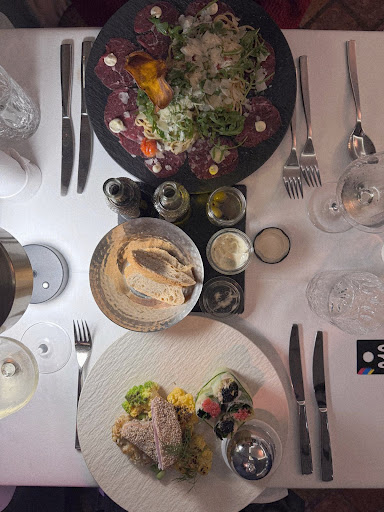 Das Rinderfilet war teilweise schlecht pariert und so circa 30 % nicht genießbar. Das Schnitzel Natur mit Trüffelsauce, Trüffelkartoffelstampf sowie Spinat war handwerklich nicht ansprechend. Das Schnitzel schwamm in einer überwürzten getrüffelten Sauce (Wahrscheinlich Butter- oder Trüffel Öl) Das Püree war zu stark geschlagen und von der Konsistenz wie Kleister, die homöopathische Dosis an Spinat für circa neun Euro extra waren durch große enthaltene Knoblauchstücke nicht essbar. Das wurde beim Servicepersonal moniert. Daraus entstand der einzige Lichtblick an diesem Abend - Der Koch, kam zum Platz , konnte die Beschwerde nachvollziehen, entschuldigte sich und brachte aufs Haus, ein sehr leckeres Carpaccio. Das Schnitzel als auch das Rinderfilet sollten nicht berechnet werden. Der Service entschied sich jedoch später das Rinderfilet doch zu berechnen. Das war sehr befremdlich, nachdem der Koch am Tisch eine andere Auffassung hatte. An der Kasse konnte ich das nur mit einem Kopfschütteln quittieren, und obwohl ich vorhatte, aufgrund des Koches, das Carpaccio zu bezahlen als auch ein entsprechendes Trinkgeld da zu lassen, war das nun nicht...