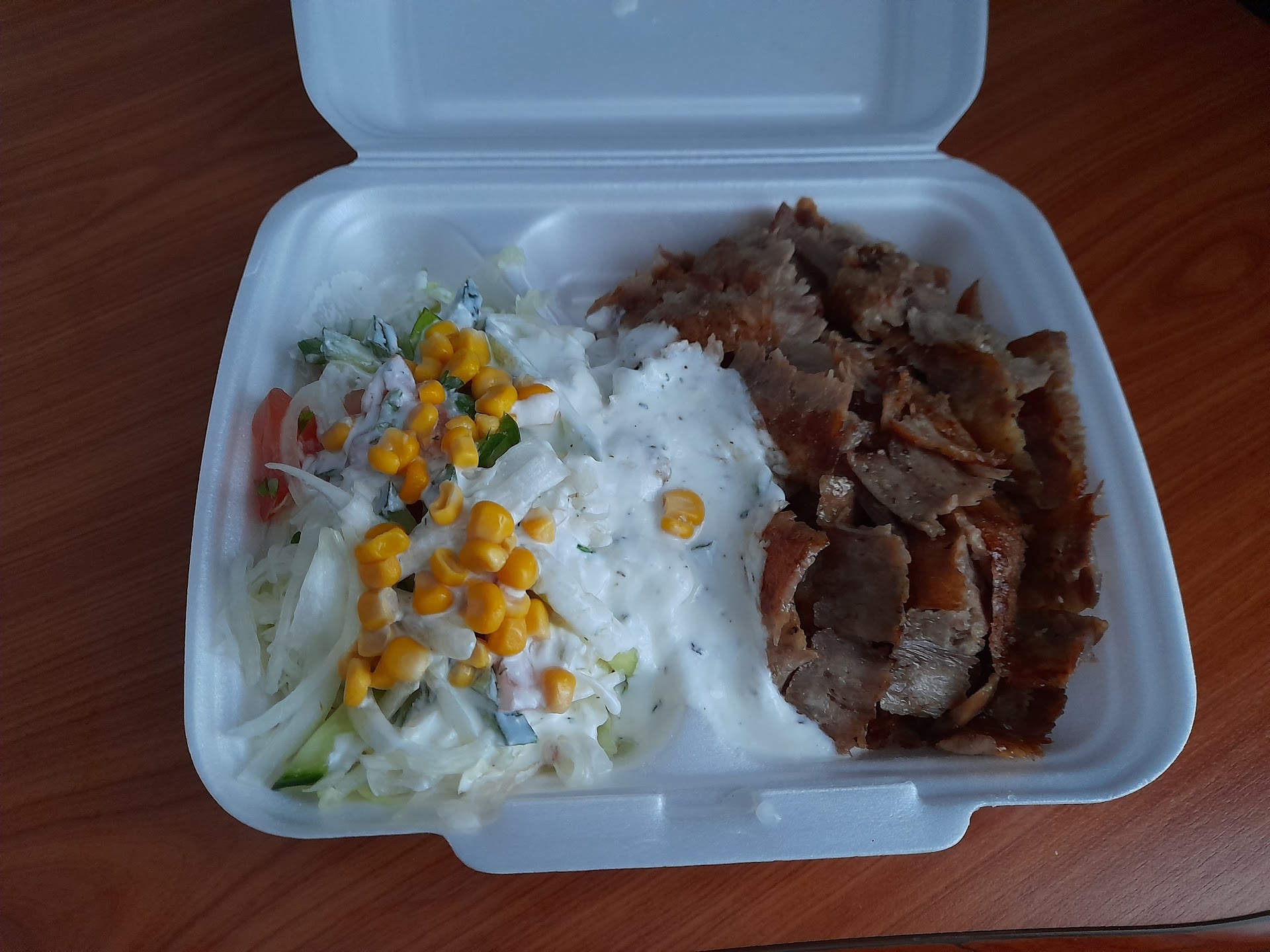 Read moreDreckig & laut und unfreindlich! Nie mehr wieder! Der Tisch war dreckig, musste ich selber putzen, und der Tzaziki war ein Joghurt Salat Dressing, der Salat labbelig, die Pommes überwürzt. Somit völlig überteuert für diese Qualität. Waren dort nach Darmspiegelung u. hatten tierischen Hunger. Alleine deswegen sind wir nicht aufgestanden und gegangen. Der Inhaber grüßt nicht mal, obwohl kein Mensch im Laden war. Er empfindet sich offenbar als etwas Besseres als seine Kunden und hockt lieber um die Ecke vom Laden. Der junge Mann der unsere Bestellung aufnahm war nett, aber leider hilft es nicht diesen schmuddeligen Eindruck zu überdecken den wir hatten. Wie da wohl die Küche aussieht? Die laute Musik im Laden lädt nicht zum Bleiben ein. Obwohl das Dönerfleisch lecker war gebe ich nur 1 Stern, da mich all die genannten Dinge doch sehr gestört und...