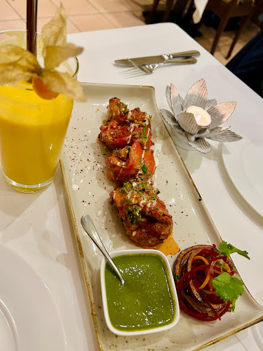 Read moreWe went there with 5 people and the flair of the restaurant is a weird mix of touristy cheap indian restaurant and expensive fine dining? The decor is fancy (besides the nude/sexual artworks), the location not in the slightest (we sat next to the 5 lane street with all its noise). Staff was friendly. While the food was fine taste wise, we all were suprised on how small the portions where and how expensive it was? We had 3 main dishes and 2 side dishes, each a drink and ended up with 150€ and we all left hungry and went to get something extra somewhere else (and it never happened to me before to leave a restaurant hungry when i ordered a main dish). A friend of mine and i ordered the butter chicken, we both got a small bowl with 4-5 chicken nugget sized chicken pieces and some sauce, and one small bowl of rice. Since we both had rice with our meal we asked where the second one is and we got a second. Later on the receipt we saw that both rice portions where 7€ extra, for a small plain bowl of rice? When we asked why we paid extra for the rice despite it being included in our main dish we were told that the first bowl was already two portions of rice put together and the second bowl were 2 extra, thus we had to pay for 2 portions extra. I had 4-5 tablespoons full of rice??? Honestly the whole experience felt like a tourist trap. The food was good, but not 30€ good for such a small portion of food. I dont understand the other good reviews here, for the same price i usually dine fancy and leave with an empty stomach and dont have the feeling i was billed stuff randomly i didnt order. Definitely...