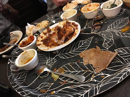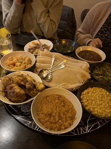 I arrived at the restaurant looking forward to a tasty African meal, however I left thoroughly underwhelmed and disappointed. When we arrived the restaurant was packed and the food didn’t look bad. We sat down and, when it was time to order, waited 10 minutes trying to attract one of the two waiters in the entire restaurants eye. We ordered the platter and attempted to order a shake, however the waitress suggested to us that it would be better not to as she said it was too busy and would take a while. Why have it on the menu if you cannot order it? Once we had ordered, we waited a solid 1 and a half hours for our food. When it eventually arrived it came in little bowls on a tray. Everyone else who ordered what we had received a large white plate with cutlery. The waitress hinted to us that they had simple run out of cutlery and plates and were waiting for people to finish their meal before they could serve us ours. That is ridiculous for a busy restaurant. This was further shown when the beers were not given to us in glasses. They simply ran out of plates and cups which is why we waited so long, as the food itself wasn’t very complex. We were not given napkins, for a place that sells food which you eat with your hand is rather strange, we were also not given enough injera. The food itself was very poor, with no flavour whatsoever, I felt as if I was eating cardboard. Our friend who had been to Ethiopia said this food was nothing like what she had had. Once we had finished, we waited another 20 minutes for the waitress to come and allow us to pay, and we were shocked as the total cost was over 75 euros. We had no idea what we payed for! Very bad experience. I only give 2 stars as the atmosphere was good. For a restaurant to not have simple things such as plates and cups is honestly...