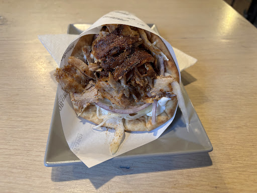 Read moreGood gyros, but nothing extraordinary. Ordered two gyros with salad, two tzatziki and one fries with Metaxa sauce. Meat was good, but unusually thinly sliced reminding me more of kebab meat than of gyros. Meat could also have been a bit leaner. The fries with Metaxa sauce were good as well, but I did not taste any Metaxa in there. It was pretty much just a creamy tomato sauce. It was the first Greek shop I ever visited that charged extra for the tzatziki! And the tzatziki was not that great, was a bit too bland and yoghurty. I can do better. Overall a good experience, but a bit overpriced. But that's what you gotta pay for, if you want to eat hip Greek food next to the hippest burger shop in a hip...