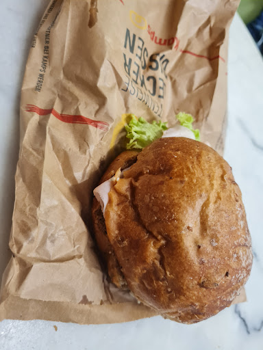Read moreSchade, ich bin gerade dort gewesen, ich habe weder ein Schild noch irgendeinen Hinweis bemerkt, dass ich mit Hund nicht dort rein darf, ich habe dann alles einfach bestellt zum "hier essen" und zeige noch mit Hundeleine in der Hand auf den Tisch. Als dann meine Bestellung endlich fertig bereitgestellt war, kommt die zweite Bedienung und verweist mich aus hygienischen Gründen aus dem Laden. Auf meine Nachfrage wo hier ein Hinweis wäre, verwies sie auf ein ein mikro großes Schild, was am unteren rechten Rand der Tür angebracht ist, die ja offen stand, was ich nicht sehen konnte. Ich könnte ja draußen essen, nur es war kalt und nass draußen. Die Tische und Stühle waren ebenfalls nass. Also habe ich alles stehen lassen und bin gegangen. Danke für so ein tolles Frühstück. Kamps kann meinetwegen pleite gehen, dann geh ich halt...