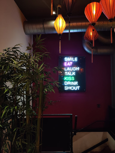 Etwas länger: Das Ambiente ist Hip und sehr gemütlich. Leicht schummrig. Eine Mischung aus einer trendigen Cocktailbar und Thai Street Küche. Wobei die Bezeichnung "Thai Street Kitchen" schon etwas "flexibel" ausgelegt ist. Dennoch sehr gelungen. Berührungsängste sollte man keine haben. An den Tischen wird schon mal wild gemischt, was die Plätze angeht. Lange Tische eben und auch größere Gruppen können einen Platz finden.