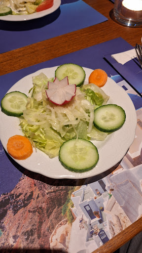 Das Essen ( Grillteller) haben wir dann kalt serviert bekommen das Gyros mit Metaxa Sauce und Käse überbacken war heiß aber Sauce war nur sehr wenig zu erkennen, geschweige vom Geschmack, eine Zumutung welches seines Gleichen sucht. Mein Grillteller unter aller Sau. Also so etwas haben wir noch nie erlebt. Der Grillteller wurde reklamiert, und eine rothaarige Kellnerin,bot mir an ein neues essen zu machen, was ich verneinte, mit den Worten, wir haben schon so lange auf unser kaltes Essen gewartet, wie lange sollen wir denn auf ein heißes essen noch warten, wir haben hunger. Als es ums Bezahlen ging, fragte ich den weißhaarigen Kellner was mit dem von mir nicht verzehrten Grillteller nun wäre und verlangte nach sehr unfreundlichen Antwort nach dem Geschäftsführer, worauf ich sehr derbe mit den Worten, da müsse ich nicht soviel labern dann wäre das Essen auch heiß,und ich müsse voll zahlen, und dann könne ich mit dem Geschäftsführer reden, der aber wie sich später rausstellte angeblich nicht im Hause sei, was nach meiner Information nicht rechtens ist und zum Verlust der Konzession führen kann. Also ein Stern ist für das Restaurant!!! Zuviel und wir werden dieses nicht mehr betreten, geschweige Weiterempfehlen. Wir können nichts empfehlen, außer die Getränke, aber die werden nicht selbst hergestellt!!