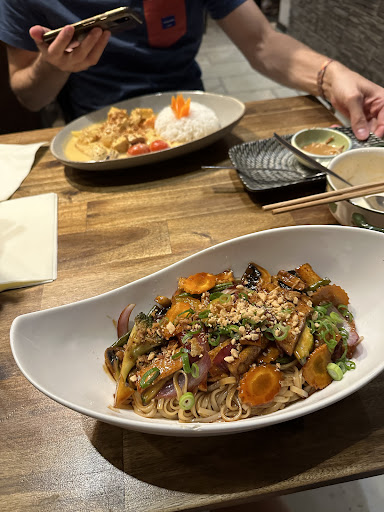 We had a coconut mushroom soup and a summer roll with chicken as starter. For main dish I had wide rice noodle with tofu (tamarind sauce) and my friend he had the first dish from the vegan option (curry with different fruits such as pineapple and lichee). I personally prefer dishes with intense and rich flavors of spices. For me the coconut mushroom soup was too watery and the favor was too light. I couldn’t taste the nutty flavor in the peanut sauce of the summer roll. My noodle was no bad but also nothing special. The flavor was just too plain or shallow in my personal opinion. You can only taste the savory flavor from tamarind or soy sauce. My friend‘s curry was better. However, it was not spicy at all (the menu said it’s spicy). The stuff was really friendly. The food was not stunning in my opinion, but I‘m a...