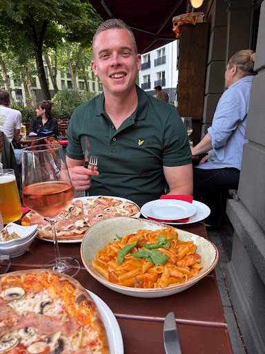Wir kamen ohne Reservierung aufgrund der guten Bewertungen zum Restaurant. Uns wurde gleich gesagt, dass wir etwa 30 min. warten müssten, um einen Tisch zu bekommen. Nach exakt 30 min. war der schöne Tisch auf der netten Terrasse bereit. Auf die Pizzen warteten wir nochmal ca. 30 min. Der Laden war komplett voll, trotzdem waren die Kellner sehr nett und für Späße zu haben. Gegen späteren Abend wirkte der Service dann schon etwas erschöpft. Unsere zweite Runde Getränke wurde vergessen und die Kellner hielten sich mehr drinnen auf (vermutlich zum aufräumen). Auf der Rechnung standen die Getränke jedoch drauf. Auf unseren Hinweis hin wurde uns aber sofort eine neue Rechnung ohne der nicht konsumierten Getränke gebracht. Leider wurden aber erst dann das erste mal darauf hingewiesen, das nur Barzahlung möglich ist. Ich musste dann noch zu einem Kiosk laufen, um Geld zu holen. Bei der Bezahlung wurde ich dann komplett überrascht. Der Kellner schenkte uns einfach eine Flasche Weißwein dafür, dass er unsere Getränke vergessen hatte. Wir sind Touristen und nur zwei Nächte hier, es könnte ihm egal sein bzw. hätte auch nur die Entschuldigung gereicht. Fazit also: sehr leckere Pizza unter herzlichen Menschen! Sollten wir wieder mal in Köln sein, kommen wir...