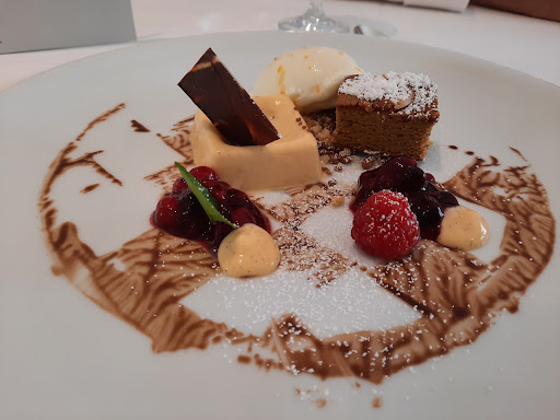 Read moreWir waren zu viert mir hohen Erwartungen hier, wurden aber leider enttäuscht. Zu zweit, hatten wir das Tatar vom schottischen Wildlachs. Der Lachs schmeckte sehr neutral un die Anrichteweise entsprach nicht dem was wir von einem Teller aus diesem Hause - zumal dies aus derselben Küche wie das Essen vom 1-Sterne Restaurant Maitre, kam. Des Weiteren hatte ich auch noch zwei dicke Gräten im Tatar, was normalerweise nicht so sein sollte. Die Gemüseterrine unserer Begleiter, war hingegen wohl gut. Ich hatte mir dann das Kalbsschnitzel, und meine Begleiter das Reh, als Hauptgericht bestellt. Meine beiden kleinen Kalbsschnitzel waren, bis auf einen Bissen, wo sich anscheinend das an anderer Stelle fehlende Salz befand, recht fade. Der lauwarme Kartoffelsalat, den ich auch schon deutlich besser gegessen habe, riss es leider auch nicht raus. Das Reh meiner Begleiter war wohl auch teils zäh, aber wohl genießbar. Rotkohl wurde auch schon mal besser gegessen, sagte man mir. Alles in allem, ein sehr teurer Abend der von der Preis/Leistung leider nicht überzeugt hat. Schade eigentlich, da wir auch mal das Sternerestaurant ausprobieren wollten. Das werden wir jetzt leider erstmal sein lassen. Vielleicht hatten sie auch nur einen schlechten Tag. Trrotzdem noch fürs...