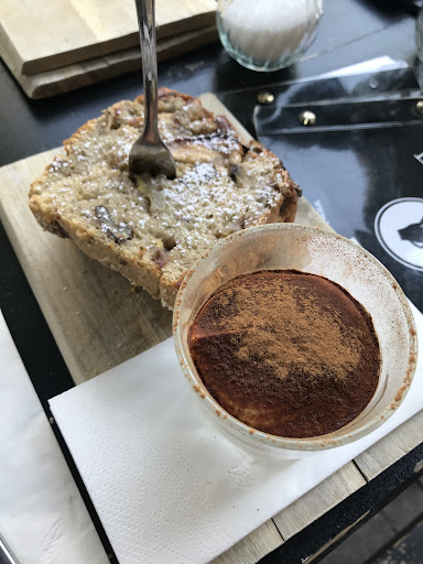 Update: I can accept the points made from the owners of this coffee shop, so I am changing my critique to two stars for the cause of fairness. For the banana bread, we end up deciding against it and didn't had any, just because the swarms of wasps, would make it simply impossible to eat. Maybe you mixed me with another client. In any case, it is way out of my way (and tastes), to give...