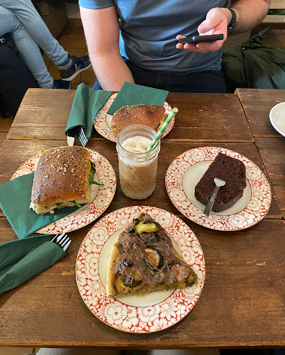 Read moreLovely charming little place. Only 5 tables but you can take away - to be fair other reviews mention a courtyard which I wasn't aware of. Service was really friendly. Note it opens at 10 but that day the full menu was not available until 12.00 Never mind - had a tasty lentil and courgette quiche which was very tasty and had a moist, fluffy texture I didn't think was possible for a vegan quiche. Coffee was the nicest I've had in ages. Laidback tunes on the radio. A bonus was the bookshelf next to my table where i discovered an English cookbook. Overall a great find. Unfortunately for many non-residents, it isn't open on Saturday or Sunday. Edit I ate in and also got a sandwich...