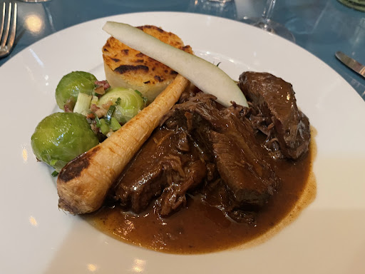 Bei den Hauptspeisen erlebten wir dann ein kleines Desaster: Bei unserem Freund war der Loup de Mer schlichtweg verbrannt, er hätte so nie rausgehen dürfen, der Gang wurde reklamiert und dann auch neu gebracht. Ich hatte ein Lammragout was leider kaum genießbar war: das Fleisch war hart und trocken, alle an unserem Tisch haben mal probiert und stimmen zu: nur mit extrem viel Sauce genießbar. Ich habe dies dann der Service Dame mitgeteilt, sie ging damit zur Küche. Feedback: man könnte mir nur teils zustimmen, manche Stücke seien trocken, manche i.O. Ich kenne gegartes Lammfleisch nur so, dass es extrem weich ist und zerfällt, wenn man mit der Gabel drauf drückt.