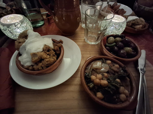 Das Essen wird serviert: Nach knapp einer halben Stunde dann endlich etwas zu Essen. Leider hielt die Freude nicht lange an. Die Speisen hatten teilweise eine bemitleidenswerte Konsistenz. Geschmacklich kaum unterschiede, weil einige der Tapas mit der gleichen Sauce angemacht wurden. Manche der Tapas schwammen geradezu im Öl. Alles in allem die nächste Enttäuschung.