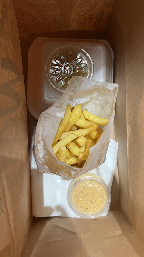 Read moreSehr schicker Laden mit einem Angebot von Burgern, Fries, Sweets und vielen mehr. Ich hatte den chili cheese Burger und große fries. Die Pommes waren vielleicht die besten Pommes die ich bisher aus einem Burgerladen probiert habe. So ein balancierter mix zwischen schön knusprig fluffigen Pommes und einpaar leckere labbrige Pommes wie bei Mc‘s. Falls die selbst gemacht wahren (konnte ich nicht rausschmecken) Chapeau, sehr gut!! Der Burger war auch schön juicy. Normalerweise esse ich den Burger ohne Salat und Tomate und lieber mit Gewürzgurke statt frischer Gurke. Dennoch fand ich die frische mal wieder abwechslungsreich. Die Jalapenos wurden vorerst auf dem Burger vergessen, doch hier wurde sehr aufmerksam agiert und mir wurden diese noch schnell hinterher gebracht. Die Jalapenos haben den Burger nochmal gut gepusht. Den Beef Bacon würde ich beim nächsten mal weg lassen. Die Saucen sind geisteskrank lecker gewesen. Onur special Sauce und Chili Cheese Sauce hatte ich. Beide nochmal sehr eigen lecker und das besondere dass diese sich geschmacklich sehr von den Standard Burger Saucen unterscheiden. Die Konsistenz war auch top! Ich würde mich freuen wenn man noch die Auswahl auf eingelegte Gewürzgurken hätte. Ich komme aufjedenfall nochmal, danke für die leckere...