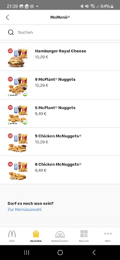 Read moreSortiment, nicht wie bei allen anderen mc donalds. Nicht mal Wrap auswählbar bei der app. Schon damals als sie aufgemacht hatten, hatten die nicht mal Apfel Taschen und co. Und viele Bürger die man bei mc donalds hat auch nicht. Das der laden sich überhaupt mc donalds nennen darf ist ein wunder. Sortiment ist grauenhaft, genau deswegen gehe ich da nie hin. Man vermisst hier ziemlich viel was bei den meisten mc donalds Standard ist. Hab sonst noch keinen mc donalds außer den hier gesehen, der nicht alles hatte. Ich habe bezüglich der bürger die zur Auswahl stehen mal ein Foto gemacht. Im Vergleich zu anderen MC ist das hier ziemlich mager. Da habe ich bei anderen ganz viele Bürger zu Auswahl und auch Wraps. Alleine wegen der mageren Auswahl gehe ich da auch nie hin. Da fahre ich lieber mal paar km und hole mir dort was. Als eine viel zu kleine...