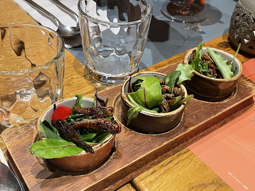 We kicked off our meal with an insect appetizer - yes, you read that right! Crunchy little critters that surprisingly didn't make us bug out. It was a wild start to our dining experience, to say the least.