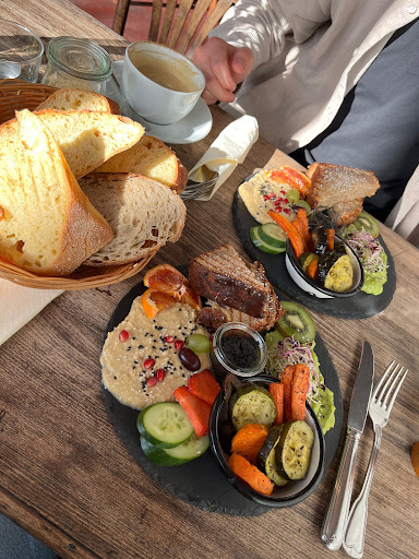 Read moreIch habe mich auf ein leckeres Frühstück gefreut. Optisch ist das Cafe sehr ansprechend. Übersichtliche aber vom Lesen her ansprechende Karte. Ich habe mir ein veganes Sandwich bestellt. Versprochen wurde ein Landbrot mit Tomatenchutney, gegrillten Tomaten und Avocado, mit einem Beilagensalat. Belegt wurden zwei Scheiben an luftiges Chiabatta erinnerndes Brot. Da die offene Küche einen Einblick zulässt konnte ich sehen wie die Mitarbeiterin mein von der Unterseite komplett verbranntes Sandwich über den Mülleiner hielt und versuchte den Schaden zu minimieren. Am Tisch angekommen begutachtete ich mein Frühstück. Die Unterseite des Sandwiches konnte ich nicht essen. Der Belag stimmte mich auch eher traurig. Ca. 1/4 einer Avocado auf einer dünnen Schicht Chutney. Gegrillte Tomaten waren nicht anzutreffen. Der Beilagensalat betand aus grünem Salat mit Rukola. Das Dressing war lecker. Dazu kommt ein nicht zu rechtfertigender Preis von 9€. Sehr unbefriedigend! Auch die hygienischen Verhältnisse in der Küche (keine Nutzung von Handschuhen, kein Händewaschen nach anderer Tätigkeit, das Anrichten selbst des Müslis mit nackter Hand und das Verarbeiten von Obst und Gemüse, welches aus den supermarktüblichen Plastikschalen geholt und nicht gewaschen wurde). Dazu kamen lange Wartezeiten, sowohl für das Essen als auch zur anschließenden Zahlung. Zwei Cafe, einen Orangensaft und zwei mikrig belegte Sandwiches die nicht satt machen für 27,50. Nach der Beschwerde wurde mir ein Espresso aufs Haus angeboten, den ich aber dankend ablehnte, da ich nicht nochmal so lange...