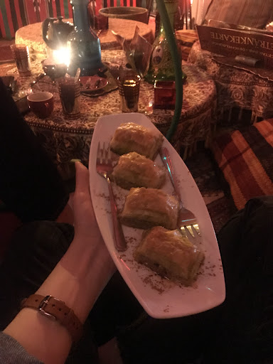 Von außen sieht der Laden erstmal nicht so einladend aus, aber wenn man ihn betritt, überkommt einen direkt der gemütliche Charme der Shisha Bar! Nicht, wie in diesen langweiligen, neumodischen Bars, die alle gleich aussehen und wo man ungemütlich auf Hockern oder harten Bänken sitzt...hier gibt es gemütliche, große Sitzecken aus Kissensofas auf dem Boden und weiter hinten, abgetrennt, eine kleinere Ecke mit super gepolsterten Sofas! Die Bedienung ist von allen Angestellten ausnahmslos zuvorkommend und sehr höflich! Die Shisha war schön sanft, es hat nix gekratzt, man konnte sie gefühlt Ewigkeiten rauchen und auch der Geschmack war top! Snacks und Getränke waren auch spitze! Der Apfeltee war richtig aromatisch und das Baklawa war eine große Portion und unglaublich gut!