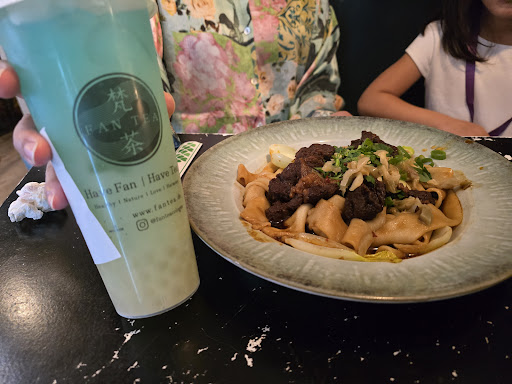 Read moreI liked that there were vegan options. You order at the counter and get a beeper so you can wait at a table. We also ordered bubble ice tea, but had to pay 2 times (card&cash), I guess because the POS system of the drinks is different from the food. We chose a table in the back corner next to the stairs which didn’t feel as clean as sitting in the front, however the noise in the front was bad due to it being the end of the day after the big Pride parade at the last day of Pride. I think it would be less dirty and chaotic if we came on a regular day.