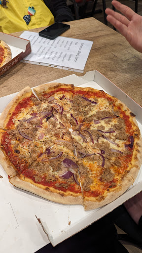 Ich kann die schlechten Bewertungen nicht nachvollziehen. Ich hole mir seit 2 Jahren ca. 1x im Monat die Pizza Capricciosa. Bei Kater oder Bock auf etwas für die fettige Seele einfach nur überragend - insbesondere die Capricciosa. Für den Sonntag auf dem Sofa würde ich mir nie wieder eine andere Pizza holen. Saftig, dünner und weicherer Boden, kaum Rand, gut belegt. Mir fehlt für den Rand nur ein Dip. Wenn der auch noch angeboten wird.... Nur so als Idee.