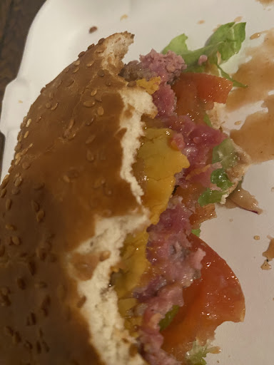 Das Essen war ursprünglich bestimmt lecker, man konnte es erahnen. Aber leider alles eiskalt. Sehr schade Burger, Pommes sahen gut aus, aber kalt war beides ungeniessbar. Den gemischte Salat ging gar nicht, keine Ahnung was das für ein Dressing war, geschmacklich der billigste Tafelessig und sonst nichts.