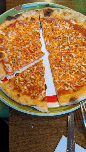 Auf meiner Pizza war nochmal extra Öl und Salz drauf, was es dann doch sehr intensiv machte. Für einen salzarmen Esser wie mich, nicht angenehm. Da wäre einfach die Möglichkeit selber nachzuwürzen wohl besser. Ich hab es trotzdem aufgegessen, weil ich/wir Hunger hatten, und auch keine Lust noch länger zu bleiben. Die Pizzen waren in der Mitte nicht gar, was immer wegen der Größe passiert oder der Hitze im Ofen. Meine Frau hatte den Salat mit gegrilltem Hühnerfleisch, dass aber nicht richtig gegrillt war. Schmeckte daher nicht danach. Vielleicht auch etwas zu teuer, siehe meine Fotos. Schaut man sich andere Fotos an, sehen die Pizzen auch viel besser aus. Hmm, aber ich kann leider keine Empfehlung aussprechen. Vielleicht hat der nächste Besucher mehr...