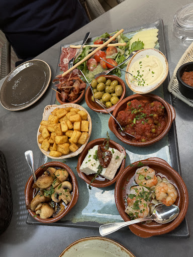 Mecker: Die Gambas al Ajillo waren stark gesalzen. Dafür fehlte die Schärfe. Wir hatten außerdem nicht den Eindruck, dass die Gambas wirklich in der Tonschale gegart wurden. Es sah eher so aus, als hätte man sie nur zum Servieren hinein gefüllt. Die Patatas Bravas waren ziemlich kleinstückig und anscheinend frittiert. Das Aioli entpuppte sich als eine recht dünne Knoblauchsauce. Beides geschmacklich nicht schlecht, aber wohl Convenience. Die Kräuterbutter hat uns nicht geschmeckt, ist aber Geschmacksache.