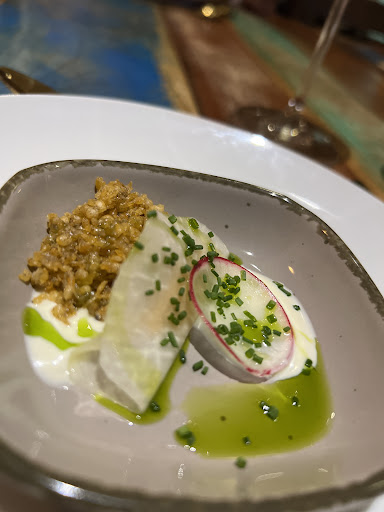 In jedem einzelnen Gang steckte so viel Herzblut, Kreativität und handwerkliches Können, dass man sich als Gast regelrecht beschenkt fühlte. Wir haben uns komplett auf ein Überraschungsmenü eingelassen und bekamen vier Gänge (begleitet von perfekt abgestimmten Weinen) die sich jeweils aufbauend übertroffen haben.