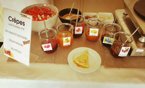 Read moreSeit langer Zeit waren wir heute mal wieder beim Sonntagsbrunch auf den Rheinterrassen. Falls man sich einen netten Tisch aussuchen möchte, empfiehlt es sich, spätestens um 11:30 Uhr vor dem - dann noch verschlossenen Tor zu warten. Bei einer Anreise mit dem Auto sollte man dabei ein paar Minuten extra für die Suche nach einem Parkplatz einkalkulieren. Kurz vor 12:00 Uhr wurde dann das Tor geöffnet und die hungrige Meute eilte in Richtung Büffet. Insgesamt kann man sagen, dass man für die mittlerweile 24,- € pro Person (vor ein paar Jahren lag der Preis noch bei 19,80 €) eine sehr umfangreiche Auswahl an kalten und auch warmen Speisen erhält. Hierzu gehören neben diversen Brotwaren (Brötchen, Croissants, Muffins, Donuts usw.), Müsli, Obst, Joghurt, Rührei (leider aus Pulver), Bacon, Nürnberger Würstchen, Frikadellen, Suppen, 6 warme Speisen, fertig portionierte Salate auch diverse süße Nachspeisen (die erfreulicherweise auch in kleinen Gläschen angeboten werden). Außerdem kann man sich Omelettes nach Wunsch zubereiten lassen. Neben der sehr ordentlichen Auswahl der Speisen stimmen aber auch die Präsentation und die Qualität der Speisen. Der Service ist schnell und freundlich. Während Kaffee (in schwarzen Thermoskannen) und heißen Wasser für Tee (in weißen Thermoskannen) bereits auf den einzelnen Tischen stehen, muss man alle weiteren Getränke beim Service bestellen. Die Preise hierfür liefen meiner Meinung nach gerade noch im akzeptablen Rahmen. So kostet z.B. 1 große Flasche Wasser 5,60 €. Abschließend kann ich sagen, dass es wieder ein sehr netter Sonntagmittag war, und wir bestimmt nicht zum letzten Mal auf den...
