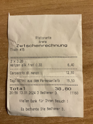 Read moreDas Essen schmeckte gut und die Zutaten schienen mir hochwertig. Die Portionen der Gerichte waren für mich recht überschaubar und die Preise durchwachsen. Den Service empfand ich jedoch als schlecht. Ich kam alleine und ohne Reservierung, daher war es für mich zunächst in Ordnung einen Tisch in einer hinteren Ecke des Restaurants zu bekommen, wobei mehrere Tische für zwei Personen noch frei waren. Der Tisch war nicht eingedeckt und ich musste einige Minuten warten, bis mir die Karte gebracht wurde. Ich bestellte Carpaccio di manzo und Pasta. Insgesamt verbrachte ich dafür über 90 Minuten an meinem Platz, wobei der größte Anteil aus Wartezeit bestand. Das Servicepersonal bemerkte auch nicht, wenn das Glas leer war, weshalb es auch bei zwei Getränken geblieben ist. Auf den Dessert verzichtete ich ebenfalls, da mir die Gefahr einer erneuten langen Wartezeit zu hoch erschien. Rund 40 EUR für Carpaccio, Pasta und zwei kleine Getränke erscheinen mir eindeutig zu viel, insbesondere bei den sehr kleinen Portionen, von denen ich nicht satt...