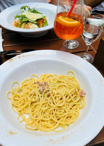 Der Nachtisch hätte alles rausreissen können. Nachdem wir uns die angeschriebenen Desserts erklären ließen (Namen auf italienisch), googelten wir nochmal, weil wir paar Namen mit was anderem verbanden. Jeder Nachtisch wurde falsch beschrieben. Das Souffle wurde zB als Eis beschrieben. Aber das Semifreddo ( Halbgefrorenes Eis) war einfach ein harter Block in dem der Löffel nach mehreren Minuten immer noch wie ne Eins stand und trotz der sommerlichen Temperaturen im Laden nicht daran dachte Semi-gefroren zu werden. Es war einfach steinhart. Ging zurück. Der Service kam nochmal an den Tisch und fragte nach wieso. Wir wären die ersten die sich beschwert hätten und das Semifreddo müsse halt ne ganze Zeit stehen bleiben. Dann ginge das.
