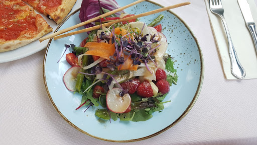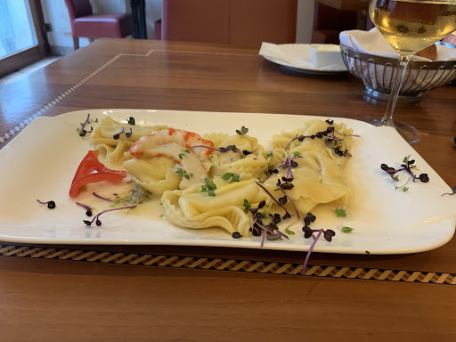 Read moreIch glaube, wir hatten einfach Pech mit dem Tag. Es waren zwei große Tische (Weihnachtsfeiern?) besetzt und auch alle anderen 4er und 6er Tische. Unsere vier verschiedenen Vorspeisen waren nett. Super schön angerichtet nur leider geschmacklos... Das Carpaccio, öhm ja, rohes Fleisch, Rucola und geschmacksneutraler Käse ohne jegliches Dressing und Gewürzen. Kein Balsamico, kein gemahlener Pfeffer oder Creme für den Rucola, die mindere Trüffelqualität durch Trüffelöl ersetzt. Der Zwischengang, Pastagerichte, waren top! Als Hauptspeise haben wir alle Pizza bestellt, mangels Alternativen. Ein Teig, der gerne noch 10 Min. im Ofen verbracht hätte, mit spärlichem Belag ohne Gewürze. Absolut lasch und geschmacklos. Für den Wareneinsatz völlig überteuert. Der Rotwein mag ja bei richtiger Temperatur gut sein, war aber viel zu kalt. Unsere Weißwein Auswahl war gut. Mein Fazit: Ein schöner Abend aber für das, was geboten wurde,...