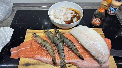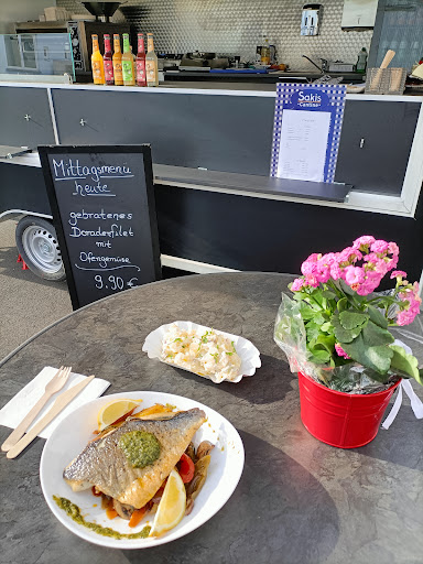 Fisch: Konstantinos' wahre Stärke Doch die eigentliche Überraschung ist der Fisch. Konstantinos bietet oft Doraden oder Wolfsbarsch an, aber mein Tipp: Lass ihn dir einen Spieß mit "allem rein" machen! Ich hatte Muscheln, Lachs und eine dicke Garnele in meiner Pita, begleitet von frischem Salat mit Honig-Senf-Vinaigrette und gebratenen Zucchini-Stücken.