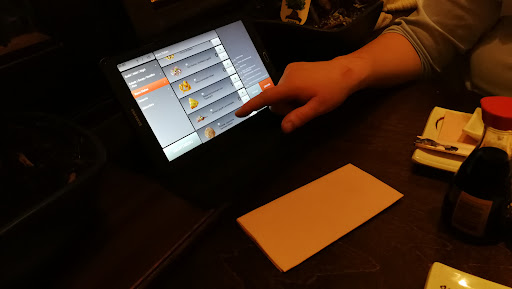 📳 Die Bestellung (sowohl der Getränke als auch fürs Essen) läuft über ein Tablet ab (und hier kommen wir auch zum einzigen "Kritikpunkt"). Was toll ist: Man wartet beim leeren Glas Cola oder Bier nicht darauf, bis der nächste Kellner kommt, sondern kann gemütlich nachbestellen, wenn man möchte. Allerdings nur bei den Getränken (!). Nach jeder Runde Sushi/All-you-can-eat Order muss man 10 Minuten warten. Bestellen kann man pro Person 5 Teile pro Bestellgang. Dies reicht auf jeden Fall generell völlig aus. Der Timer von 10 Minuten ist allerdings absolut unnötig und sorgt nur dafür, dass man auf die Uhr schaut, wann man das nächste mal bestellen "muss", da man ja auch nur 2 1/2 Stunden Zeit dafür hat.