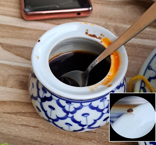 Nach vielen Jahren habe ich vor 3 Wochen dieses Restaurant mal wieder besucht - Essen war super, Wartezeit okay, Bedienung freundlich. Also gestern gleich nochmal mit 4 Personen hin. Es war ein Desaster! Die einzige bestellte Vorspeise wurde erst zusammen mit dem Hauptgericht serviert. Kann passieren, ist aber eher nicht der Sinn der Sache, dem Hauptgericht beim kalt werden zuzusehen. Zwei Hauptgerichte schmeckten gelinde gesagt nach nix mit Currynote, ansonsten hatten sie keinerlei Würze. Die (als gebraten bestellten) Nudeln waren ziemlich zerkocht-matschig und hatten die Pfanne möglicherweise nur im Vorbeigehen gesehen. Als drittes Hauptgericht wurde gebratener Reis mit Hühnchen bestellt, serviert wurde gekochter Reis mit Ente. Auf unsere Reklamation, dass a) das falsche Essen serviert wurde und b) das bestellte Essen nach nichts schmecke und auch nur lauwarm war, zuckte der Kellner erst mal nur mit den Schultern und meinte, er habe das ja nicht gekocht, das müssten wir beim Koch reklamieren... Im Anschluss wurde angeboten, das falsche Essen durch das richtige zu ersetzen, was wir aber abgelehnt haben, weil wir ja alle zusammen essen wollten und nicht wollten dass einer erst essen kann, wenn alle anderen schon fertig sind. Wir haben aber darum gebeten, zusätzlich wenigstens noch eine Portion gebratenen Reis zu bringen, wie er ja auch bestellt war. Den haben wir auch relativ schnell erhalten. Die lauwarmen Gerichte wurden dann nochmal in die Mikrowelle geschoben, nachgewürzt wurden sie nicht. Auf unsere Bitte, dann doch bitte noch etwas Sojasauce und / oder Sambal Oelek an den Tisch zu bringen, erhielten wir Sojasauce in einer völlig verdreckten Zuckerdose, auf der zur Krönung des Ganzen dann noch eine tote Mücke klebte (auf dem Foto sieht man das Gefäß im von uns noch unberührten Zustand). Ich habe ab dem Zeitpunkt beschlossen, die Nahrungsaufnahme in diesem Laden zu beenden. Beim Abräumen durch einen anderen Kellner wurden wir freundlich gefragt, ob es geschmeckt habe, was wir verneint haben und dann nochmal zusammenfassend erklärt haben, was alles falsch gelaufen ist. Eine Entschuldigung gab es dazu nicht - und auch keinen Kellner mehr, der nochmal an unseren Tisch kam, um nach Getränken zu fragen. Stattdessen durften wir dann nochmal eine ganze Weile auf die Rechnung warten. Das falsch gelieferte Gericht sollten wir - obwohl teurer als das ursprünglich bestellte - zum originalen Preis bezahlen, außerdem wurde der zusätzlich bestellte Reis voll in Rechnung gestellt. Beides haben wir wo nicht hingenommen und letztlich dann nur den Preis des eigentlich bestellten Gerichts bezahlt. Alles in allem war es ein sehr enttäuschender Abend bei dem wir uns als Gäste wie Dauernörgler gefühlt haben, die wir ganz...