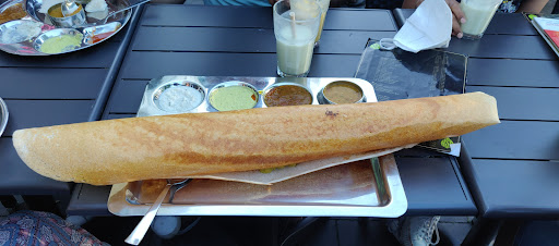 Read moreIf you have a taste for Veg Southindian food, you will already be familiar with the Saravanaa Bhavan brand. The food in general is good and satisfying. We went there with family friends on a nice warm afternoon, expecting to have a long wait time (earlier experinece by my friends) but were surprised with an immediate availability with options to sit outside or inside :-) We chose a nice seat outside and noth ambiance, service and food were satisfying. The trick is to stick to the basics - idli, vada, sambhar, masala dosa were all excellent, coconut chutny exceptional and green chutny not out of the world, but decent. The menu is elaborate with mix of northindian and Chinese dishes too but I would not recommend too much exprimentation here. Chole Bature and Poori aloo were also fantastic!! But I tried some fried idli expecting it to be southindian taste but was idli coated with cornflower and in a chinese semi gravy, not at al lwhat i was expecting! We ordered a thaali too which was a mixed bag - tamaring rice was too sour (I knwo it is meant to be sour but not this much :-), curd rice was OK and other rices very forgetable. Dip idli was good, paneer 65 we struggled to finish (not great). Do not bother about the desserts either - limited choices/availability and I would not recommend. Payasam of the day was less than ordinary, falooda not to anyone's taste from our group of 6 adults and kids. In all ,excellent place to spend a godo time with nice outdoor seating. In terms of food, stick to the basics, southindian stuff and you will...