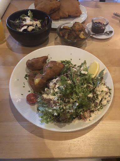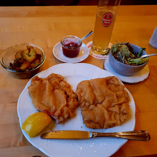 I had the fried chicken as my main dish. The chicken tasted great and the salad aside was very fresh and I like the dressing. We had a dessert with raspberry sorbet which was Sunday menu. It was very good. The Kalbsschnitzel my boyfriend had was tasty as well. The coating was very stunning. The Kalbsschnitzel looked like two pillows when they were served. Besides, the Bratkartoffeln were very great. Crispy but not oily at all. Everything tasted great and felt healthy. And, the staffs there were all very friendly. However, it was a little pricy and the options for meals were not diverse. Maybe they serve different daily menu set. Generally it’s a...