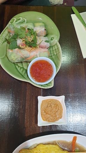 So the food arrive, we had 84 - satay chicken with some rice and veggies, which was bad. Pad tai with chicken was decent, the rice paper rolls were crisp from the salat and the other vegetables in it, my friend did not enjoy it. But the fruhlings roll were good, since that was the only one all of us liked among what we ordered. The mango lassi was good as well. Not worth the money.