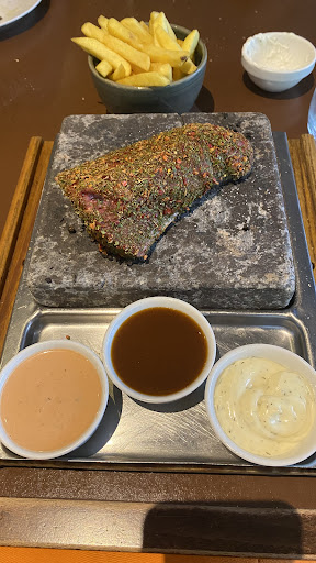 Read moreWir waren gestern dort, zu unserer jährlichen Weihnachtsfeier. Angebot der Speisen war sehr abwechslungsreich und gut. Preis/Leistungsverhältnis war nicht in Ordnung, da die Portionen entweder zu klein waren oder der Preis zu hoch. Deutlich wurde dies bei der kleinen Vorspeise (Carpaccio mit Zitronendressing für 14 €), Hauptgericht ( Pfeffersteak mit Bratkartoffel für 24 €. Ohne ein Gemüse oder Salatdekoratin, nur mit einer dunkelbraunen Pfeffersoße, sah der Teller, der Jahreszeit entsprechend, depressiv aus. Eine weitere Soße, z.B. Bernaise konnte nicht bestellt werden, alternativ wurde nur eine Bratensoße angeboten. Hätte man sich eine Steak oder Filet bestellt, so hätten mehrere Saucen zur Auswahl gestanden. Da frage ich mich welche ??? Geschmacklich waren Vor- und Hauptspeise in Ordnung. Den krönenden Abschluss machte der Nachtisch. Tiramisu für 5,50 € ist eigentlich angebracht, doch nicht für das lieblose Sahneglas mit Blau- und Brombeere. Mit drei Getränken kam ich auf die stolze Summe von 50 €. Da mir die Servicekraft kaum Aufmerksamkeit schenkte und es auch keine Rückfragen gab, ob es geschmeckt hat, nun diese...