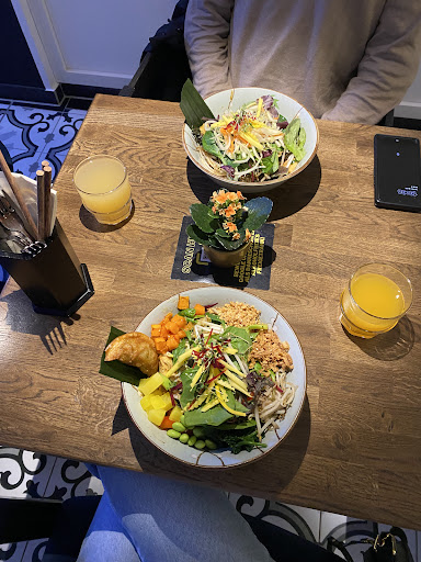Read moreI ordered crispy crisp tofu, green leaf, Buddha rolls, zenchay pocket, and red paradise for drinks. I like the drink (fruity but not too sweet), green leaf (the chewy texture from the mushroom and rich flavors from all the ingredients), and the Buddha rolls and zenchay pocket. The crispy crisp tofu was a bit too dry in my opinion and also the raspberry sauce was a bit too light. Either marinating the tofu before breading it or giving the sauce more flavor would make that starter more tasty. The internal design of the restaurant is modern and elegant. Stuffs are...